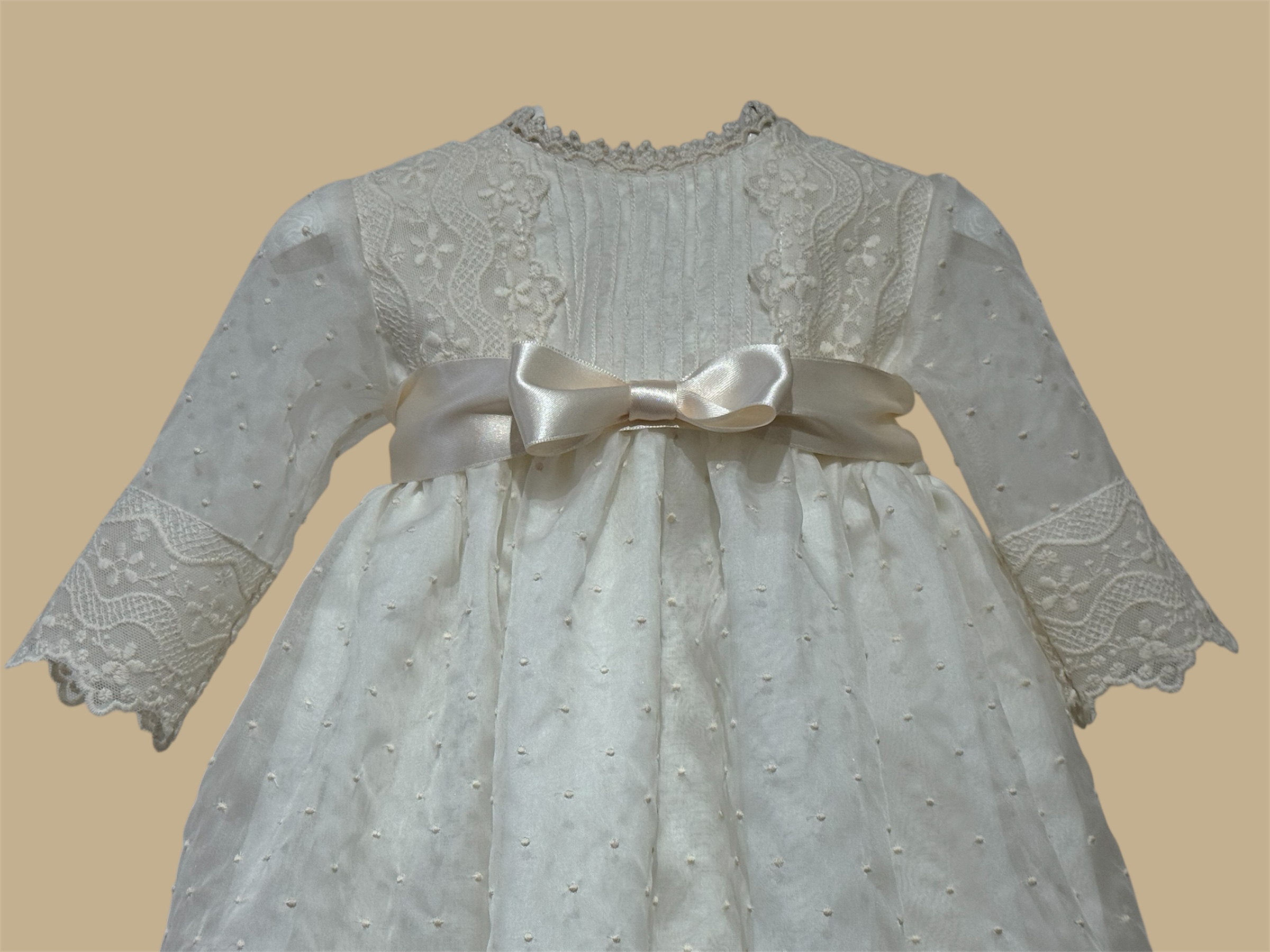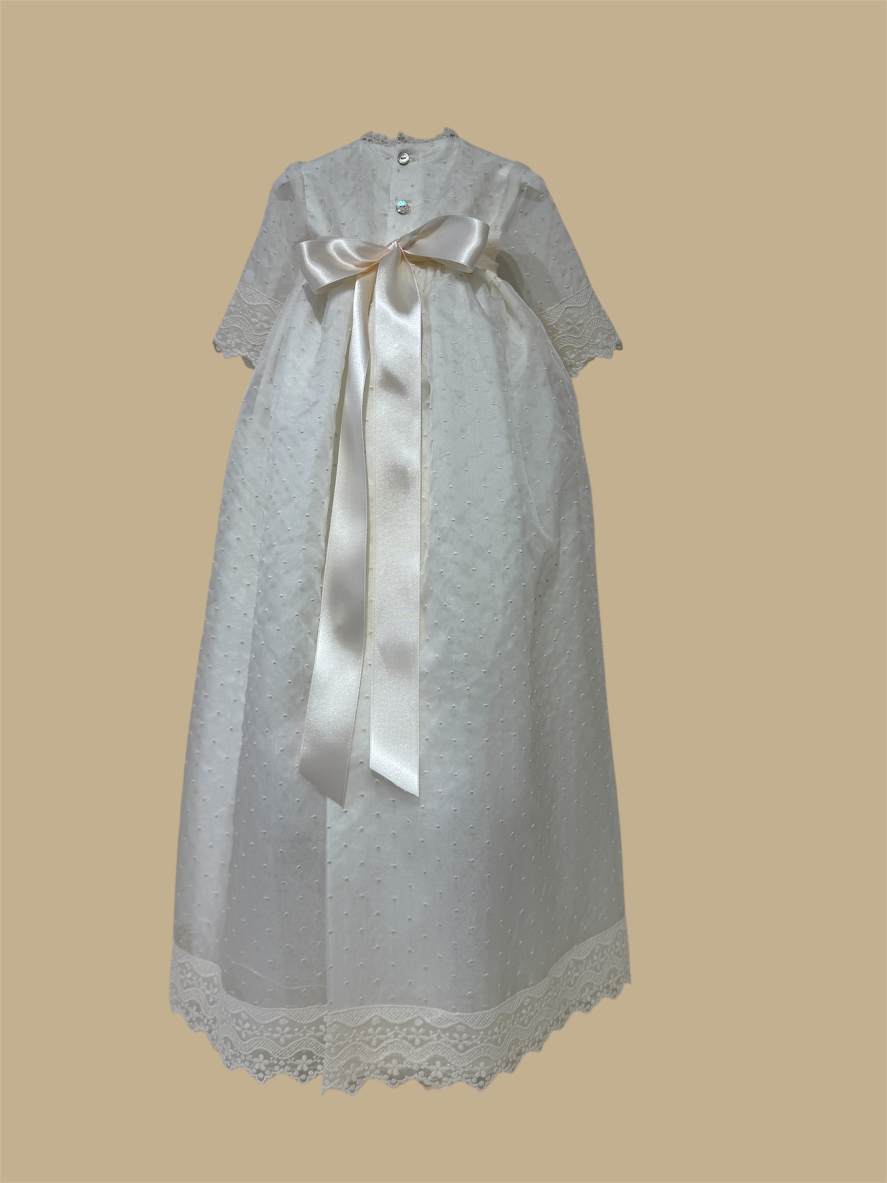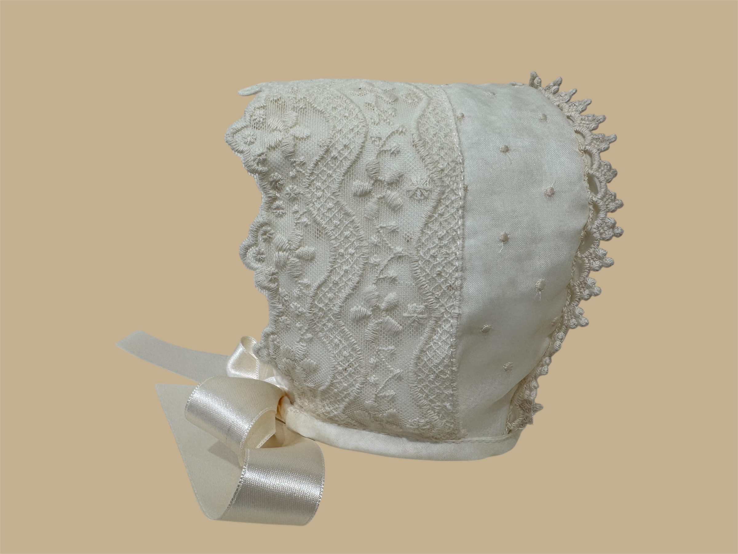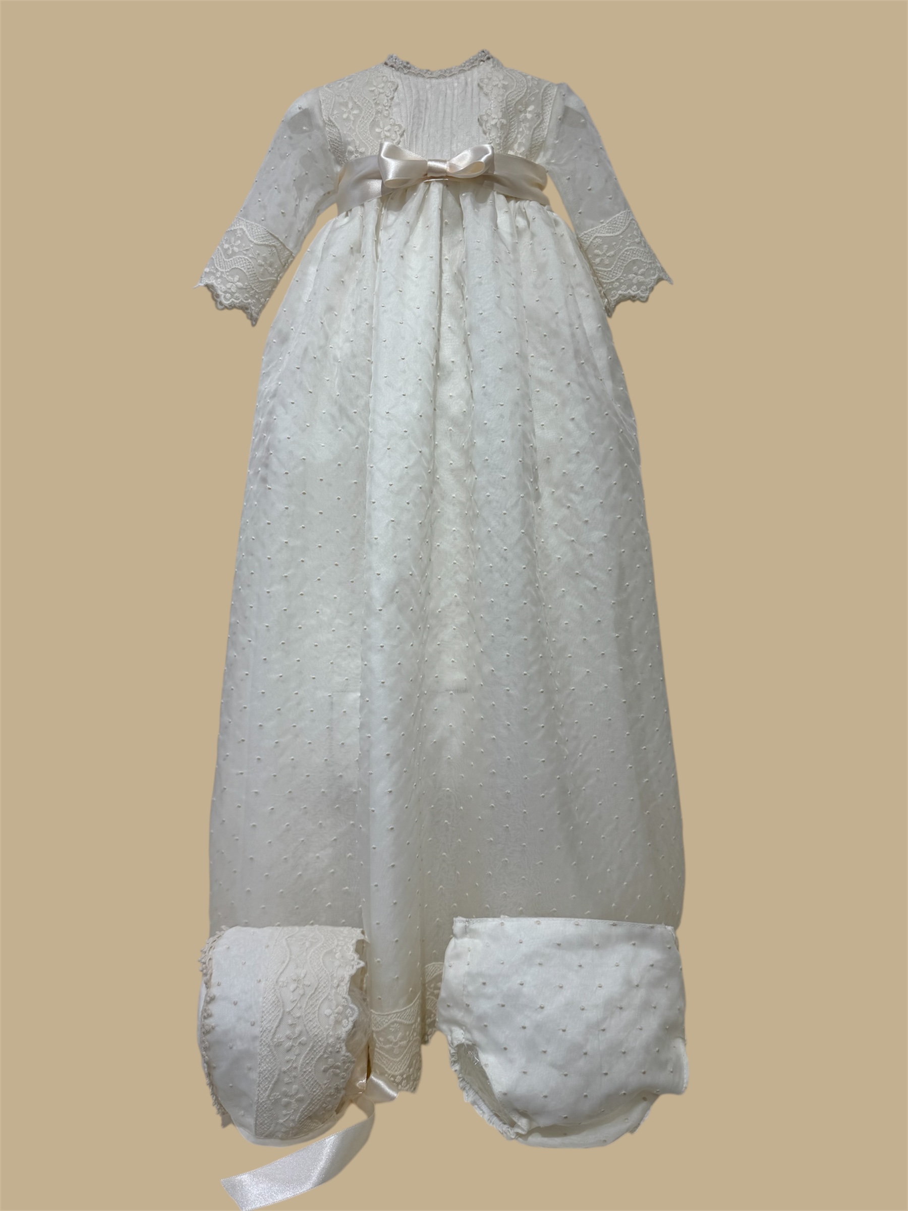 Faldón con braguita y capota en tejido de organza de seda bordada. +info: 674 884 014