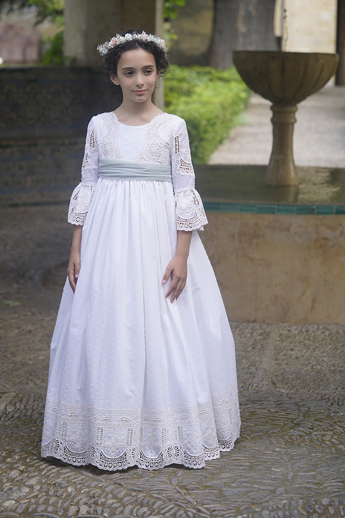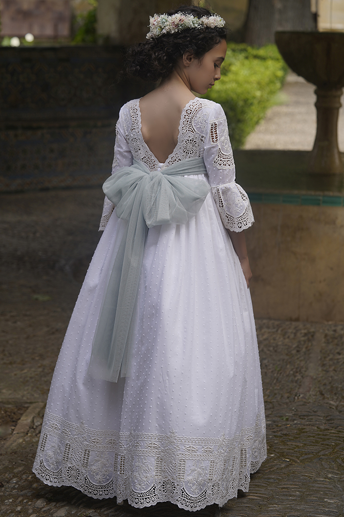 Vestido de comunión de plumeti de algodón bordado